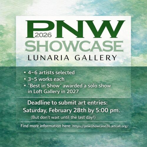 Pacific Northwest Showcase — Calling the Bold, the Brilliant, and the Unmistakably You! Lunaria Gallery in historic downtown Silverton, Oregon invites artists from across Oregon and Washington to submit their most compelling work for the Pacific Northwest Showcase — a juried exhibition celebrating the region’s outstanding creative talent. We’re hand-selecting 4–6 exceptional artists whose work shows artistic excellence, strong technique, and a distinctive creative voice. Each selected artist will be…